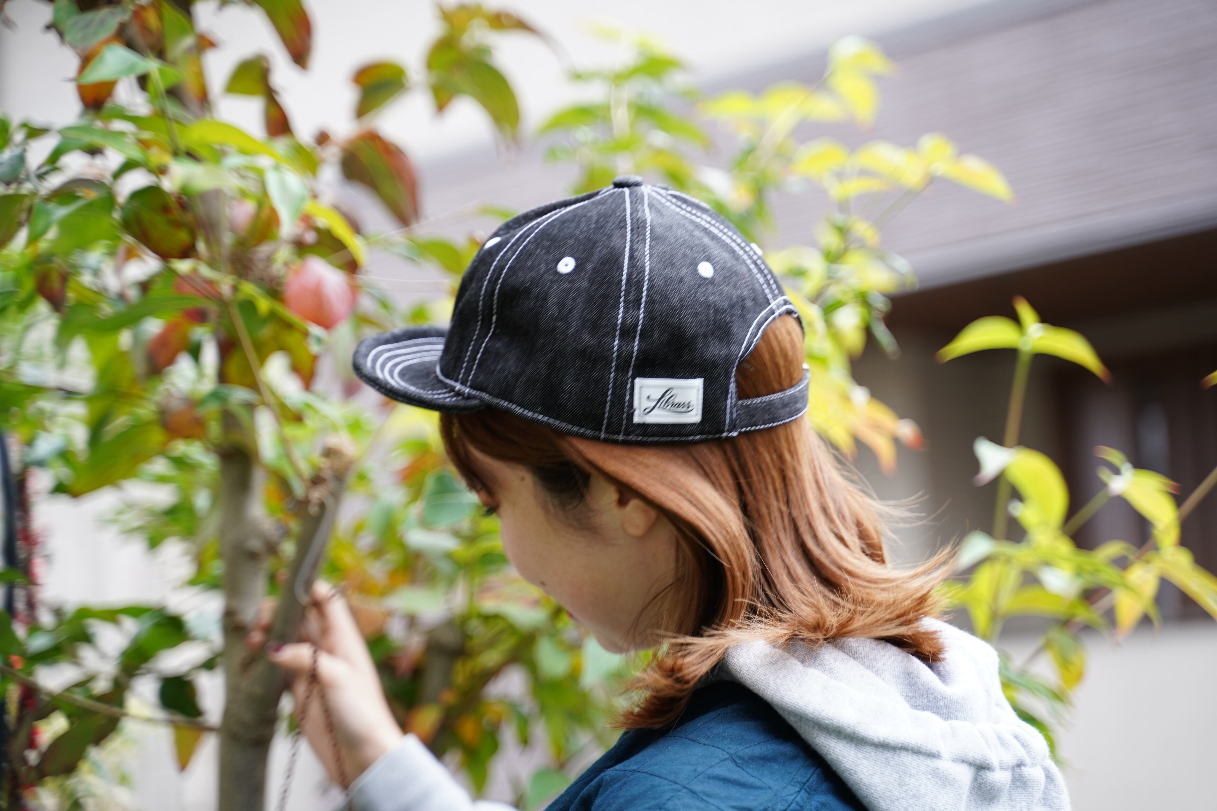 使いまわし易いショートブリムタイプのデニムアンパイアキャップ